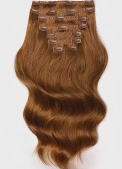 Add instant length, volume, and glamour with our premium 16 inch Full Volume Clip-In Hair Extensions in Light Chestnut Brown. Crafted from 100% Remy human hair, these extensions are soft, silky, and blend beautifully with your natural hair for a flawless finish.