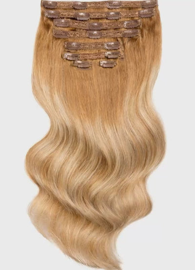 16 inch Full Volume Clip in Hair Extensions Ash Brown & Light Blonde Balayage