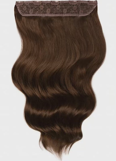 Want fuller, thicker hair in seconds? Our Clip-In One Piece Volumiser Hair Extensions in Mocha Brown is the perfect solution for adding instant volume and body — without a full set of clip-in extensions.
