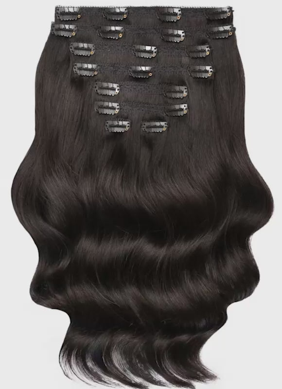 20 inch Deluxe Clip in Hair Extensions #1B Natural Black