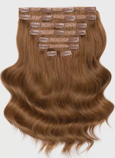 Take your look to the next level with our 20 inch Deluxe Clip-In Hair Extensions in Medium Brown. Crafted from the highest grade 100% genuine Remy human hair, these premium extensions provide luxurious length, volume, and a soft, silky finish that blends seamlessly with your natural hair.