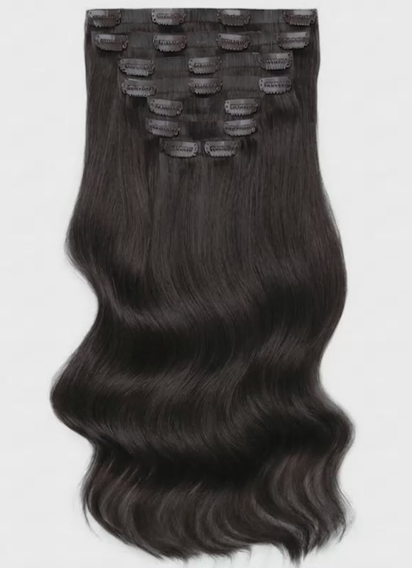 20 inch Seamless Clip in Hair Extensions #1B Natural Black