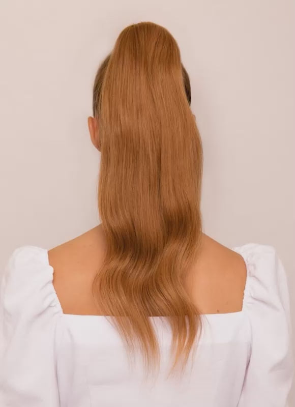 The clip and wrap-around design makes application quick and secure. Simply clip the extension over your natural ponytail and wrap the integrated strand of hair around the base for a seamless, polished finish.
