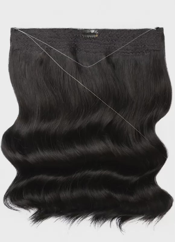 Achieve fuller, thicker hair in seconds with our 22 inch Halo Hair Extensions in Jet Black. Crafted from 100% Remy human hair, this innovative one-piece extension offers a comfortable, lightweight, and temporary alternative to traditional methods like clips, glues, beads, and weaves.