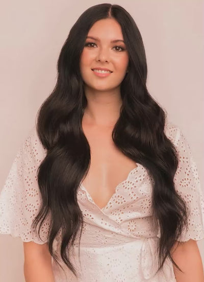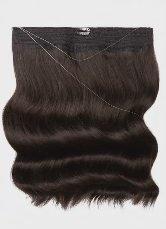 Achieve fuller, thicker hair in seconds with our 22 inch Halo Hair Extensions in Natural Black. Crafted from 100% Remy human hair, this innovative one-piece extension offers a comfortable, lightweight, and temporary alternative to traditional methods like clips, glues, beads, and weaves.