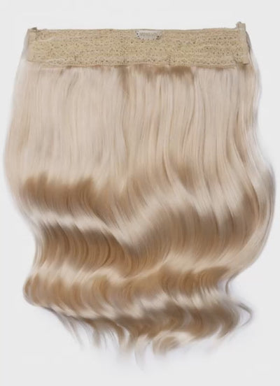 Achieve fuller, thicker hair in seconds with our 22 inch Halo Hair Extensions in Ice Blonde. Crafted from 100% Remy human hair, this innovative one-piece extension offers a comfortable, lightweight, and temporary alternative to traditional methods like clips, glues, beads, and weaves.