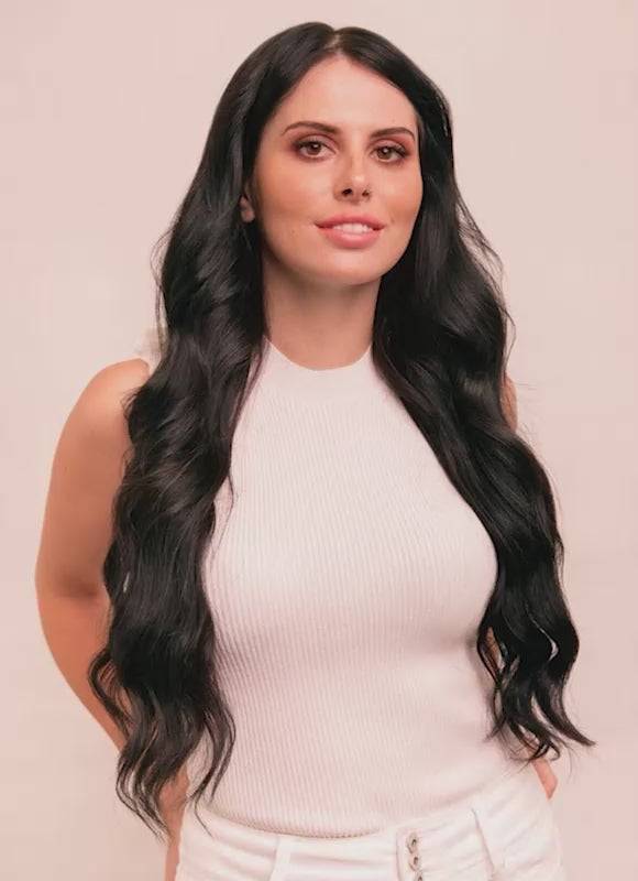 Take your look to the next level with our 24 inch Deluxe Clip-In Hair Extensions in Jet Black. Crafted from the highest grade 100% genuine Remy human hair, these premium extensions provide luxurious length, volume, and a soft, silky finish that blends seamlessly with your natural hair.