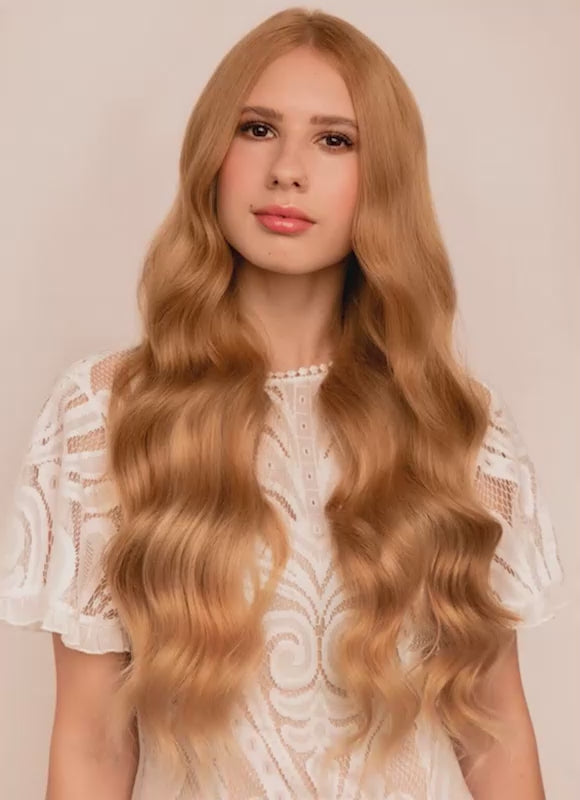 Indulge in the thickest, most luxurious hair extensions we offer — our 24 inch Ultimate Volume Clip-In Hair Extensions in Dark Blonde. Crafted from double drawn, 100% cuticle-aligned Remy human hair, these premium extensions deliver exceptional thickness from top to ends, a soft, silky feel, and stunning, natural-looking volume.