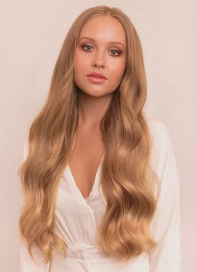 Indulge in the thickest, most luxurious hair extensions we offer — our 24 inch Ultimate Volume Clip-In Hair Extensions in Golden Blonde. Crafted from double drawn, 100% cuticle-aligned Remy human hair, these premium extensions deliver exceptional thickness from top to ends, a soft, silky feel, and stunning, natural-looking volume.