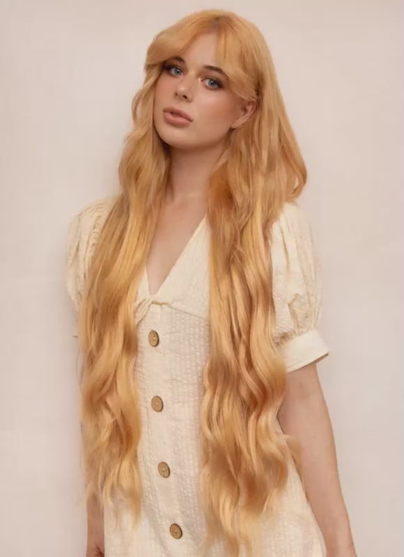 Experience unparalleled length and volume with our 30 inch Ultimate Volume Clip-In Hair Extensions in Strawberry Blonde. Crafted from the highest grade 100% Remy human hair, these extensions are double drawn and cuticle-aligned, ensuring thickness from root to tip and a silky, tangle-free finish.