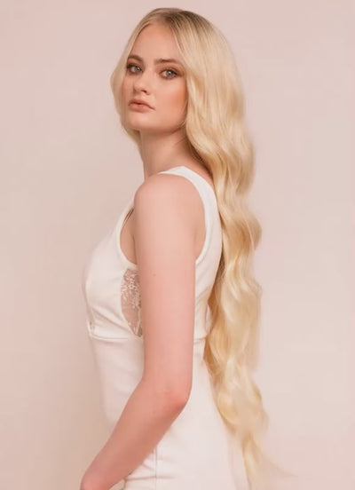 Experience unparalleled length and volume with our 30 inch Ultimate Volume Clip-In Hair Extensions in Light Blonde. Crafted from the highest grade 100% Remy human hair, these extensions are double drawn and cuticle-aligned, ensuring thickness from root to tip and a silky, tangle-free finish.